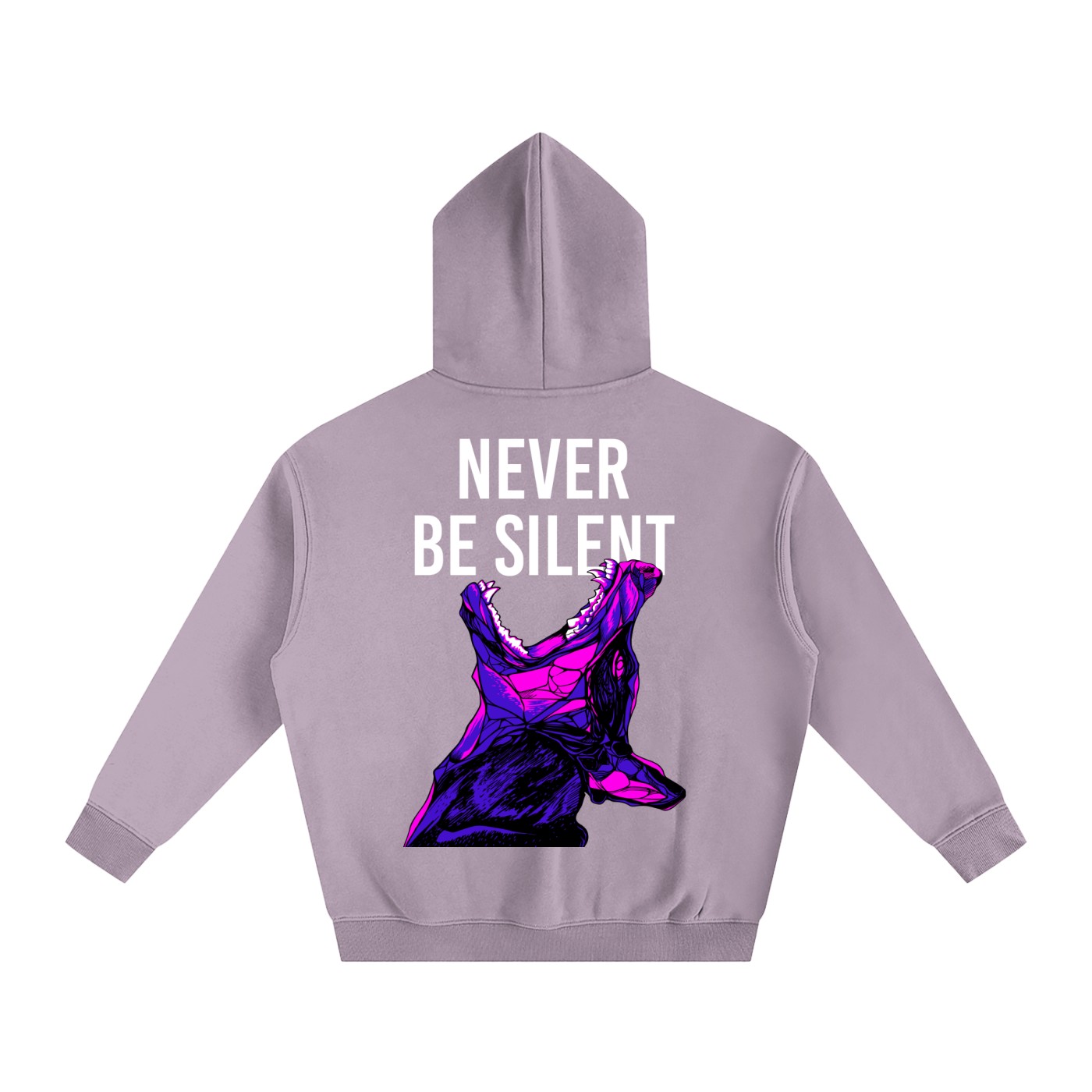 Roar without making a sound. The Silent Hoodie by Amotive lets your presence do the talking — featuring a ferocious neon dinosaur graphic in electric purple and hot pink that screams individuality while you stay deadly quiet.